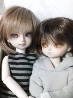ふと思い立って、ちびふたりにデフォルトウイッグ(あゆむと凌)をかぶせてみました。