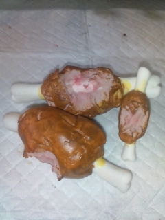 友人はそれを真似したくて、ケンタッキーフライドチキンの骨を漂白剤に数日間つっこみ、同じような帽子を作ってました。