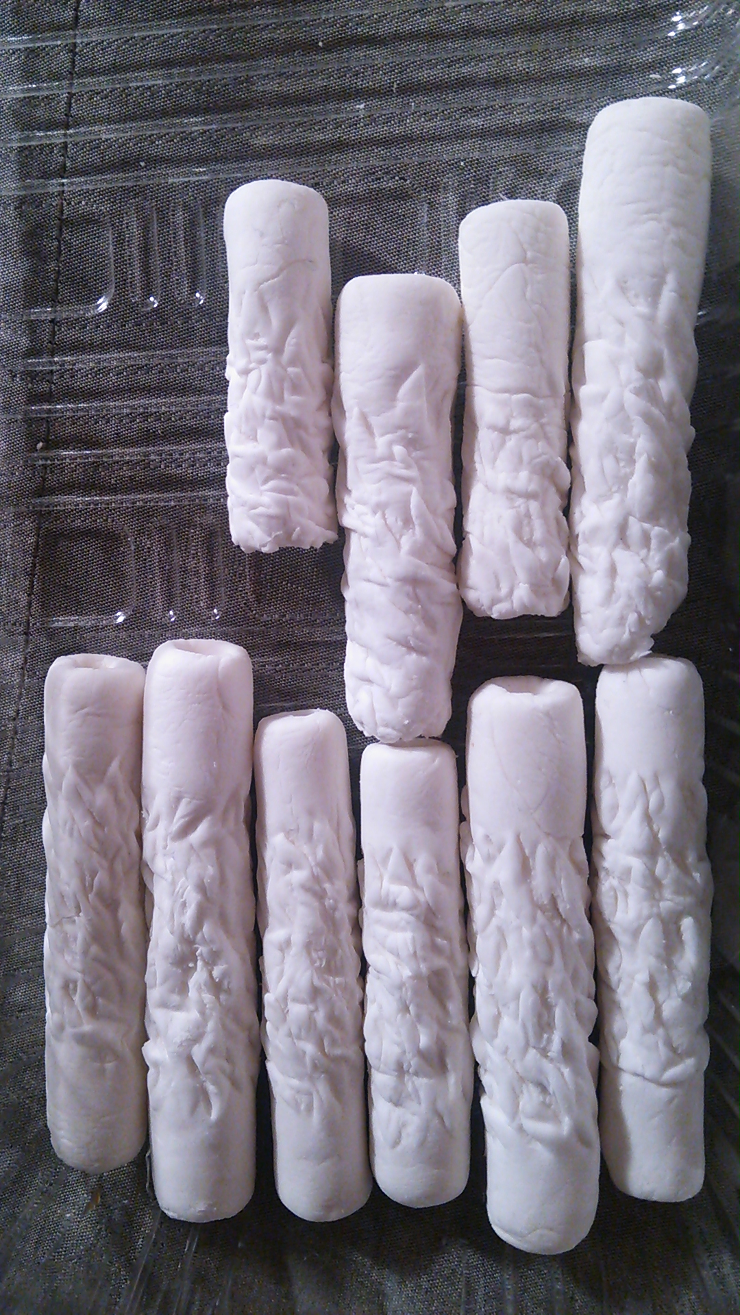 粘土の乾燥には気を付けているのに、一部のちくわ同士が仲良くしてくっついてしまいました。